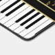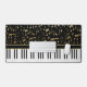 An elegant design for the pianist or keyboard player - featuring keyboard keys with golden coloured musical notes on a black background. The background colour can be changed to any colour to suit your own needs and style, Customise the text on the golden coloured strip between the piano keys and the music notes.