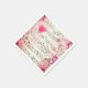 Paper napkins with a elegant and nostalgic design. Music sheet decorated with a big pink heart and pink roses and wildflowers around the edges.