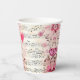 Paper cups with a elegant and nostalgic design. Music sheet decorated with a big pink heart and pink roses and wildflowers around the edges.