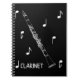 White sketch clarinet graphic, music notes, and "clarinet" text.