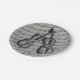 Paper plates with musical notes with violins against a grey backgrounddddddd