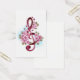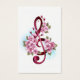 Pink treble clef with delicate, detailed pink Japanese cherry blossoms against white background painted over with light blue paint. Blooming pink sakura.