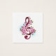 Pink treble clef with delicate, detailed pink Japanese cherry blossoms against white background painted over with light blue paint. Blooming pink sakura.
