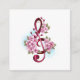 Pink treble clef with delicate, detailed pink Japanese cherry blossoms against white background painted over with light blue paint. Blooming pink sakura.