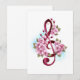 Pink treble clef with delicate, detailed pink Japanese cherry blossoms against white background painted over with light blue paint. Blooming pink sakura.