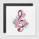 Pink treble clef with delicate, detailed pink Japanese cherry blossoms against white background painted over with light blue paint. Blooming pink sakura.