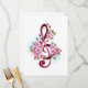 Pink treble clef with delicate, detailed pink Japanese cherry blossoms against white background painted over with light blue paint. Blooming pink sakura.