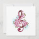 Pink treble clef with delicate, detailed pink Japanese cherry blossoms against white background painted over with light blue paint. Blooming pink sakura.