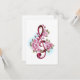 Pink treble clef with delicate, detailed pink Japanese cherry blossoms against white background painted over with light blue paint. Blooming pink sakura.