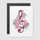 Pink treble clef with delicate, detailed pink Japanese cherry blossoms against white background painted over with light blue paint. Blooming pink sakura.