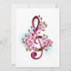 Pink treble clef with delicate, detailed pink Japanese cherry blossoms against white background painted over with light blue paint. Blooming pink sakura.