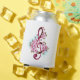Pink treble clef with delicate, detailed pink Japanese cherry blossoms against white background painted over with light blue paint. Blooming pink sakura.