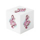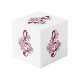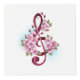 Pink treble clef with delicate, detailed pink Japanese cherry blossoms against white background painted over with light blue paint. Blooming pink sakura.
