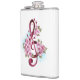 Pink treble clef with delicate, detailed pink Japanese cherry blossoms against white background painted over with light blue paint. Blooming pink sakura.