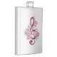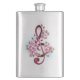Pink treble clef with delicate, detailed pink Japanese cherry blossoms against white background painted over with light blue paint. Blooming pink sakura.