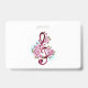 Pink treble clef with delicate, detailed pink Japanese cherry blossoms against white background painted over with light blue paint. Blooming pink sakura.