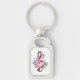 Pink treble clef with delicate, detailed pink Japanese cherry blossoms against white background painted over with light blue paint. Blooming pink sakura.