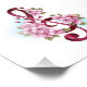 Pink treble clef with delicate, detailed pink Japanese cherry blossoms against white background painted over with light blue paint. Blooming pink sakura.