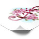 Pink treble clef with delicate, detailed pink Japanese cherry blossoms against white background painted over with light blue paint. Blooming pink sakura.