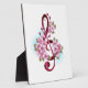 Pink treble clef with delicate, detailed pink Japanese cherry blossoms against white background painted over with light blue paint. Blooming pink sakura.