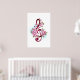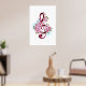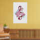 Pink treble clef with delicate, detailed pink Japanese cherry blossoms against white background painted over with light blue paint. Blooming pink sakura.