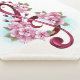 Pink treble clef with delicate, detailed pink Japanese cherry blossoms against white background painted over with light blue paint. Blooming pink sakura.