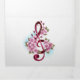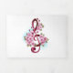 Pink treble clef with delicate, detailed pink Japanese cherry blossoms against white background painted over with light blue paint. Blooming pink sakura.