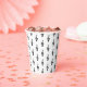 Musical symbol paper cup with a black treble clef pattern design on a white background. Great for planning receptions after concerts and recitals.