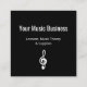 Music lessons business card, on a black background and a white treble clef symbol. With white and black customisable lettering, you customise with your own information. You also add your website to allow for connection with a QR code. Great for promoting your musical business.