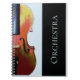 Violin orchestra music notebook, with a violin image set on a blue and black background. With blue lettering, you can customise with your own text. Great for taking notes in your music theory class!