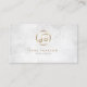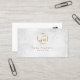 This elegant professional musician business card features an elegant marble texture background. A gold music note icon appears on the top half of the card. Your name and title appear in the lower middle section, below the gold monogram square. Perfect for professional, entertainment, showbusiness, concerts, talent, music, musician themes.