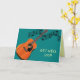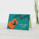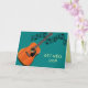 Get well card for musician guitar player. Folded Christian card has scripture inside on the top and a personalised message on the bottom. Sample scripture is from Psalm 147:1 and reads, "Praise the LORD. How good it is to sing praises to our God, how pleasant and fitting to praise him!" Easily change it to your favourite verse. Teal blue cards with an orange, acoustic guitar image and musical notes on the front, the colours carry over to the inside. A modern printed font completes the masculine look. Cards come in three sizes.