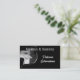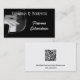 This elegant, black and white music themed business card showcases a person's hands on a grand piano with plenty of space to add your name and tag line, quote, or company name. The back of the card includes a QR code to direct people to your website. Photography and design ©Vann-Horn Creative Photo & Designs.
