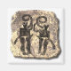 Musicians is from rock art found in Kalleby, Sweden and dates to the Bronze Age. It appears to be two people playing musical instruments made from animal horns.
