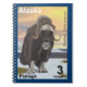 A hypothetical postage stamp of an independent Alaska featuring a bull muskox (Ovibos moschatus) on coastal tundra. Called oomingmak (the bearded one) by the Inuit