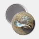 A mussel shell rests on the sandy beach with gentle side lighting from the sunset. The light captures the frayed ridges that have been worn by the ocean. From the angle, the shell takes on the appearance of an eagle's head profile where the clasp of the shell has a beak like structure. Image is a colour photograph taken at Playa Grande, Costa Rica on the Pacific Coast. Customise this sea shell beach magnet with your own text or images to make a special seashell gift!