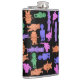 The flask itself is fine. It’s a cheap flask, obviously bought in bulk, however am prepared to overlook that. Given that it is a personalized item, I would have liked to have seen gift boxing instead of the generic packaging. Terrible printing, and/or quality. It’s a cheap, tacky vinyl. It is not cut straight and is also applied in a way that it is overhanging the bottom, causing the glue to catch on items and it will eventually roll and tear, damaging the wrap.