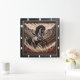 Experience the untamed spirit of the wild with our Mustang Bucking in a Mountain Valley wall clock, a stunning piece that captures the essence of freedom and adventure. This clock features a magnificent Mustang, full of life and energy, galloping through a breathtaking mountain valley, perfectly framed by a ½-inch flat black wooden border that adds a touch of elegance. The embedded wood showcases deep carvings with a charred, textured grain, highlighted by rugged burn marks in striking red, grey, and black, creating a dramatic contrast against the lighter wood tones. This unique design not only serves as a functional timepiece but also as a captivating work of art that brings the beauty of nature into your home.
