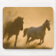 A cowboy rounds up wild mustangs. The dust swirls around the thundering hooves and creates a diffused scene. Pastel art by award winning wildlife artist Kathie Miller.
