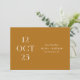Share your wedding date with warm modern character using this minimalist Save the Date card in mustard brown. The bold editorial style date layout creates a clean, design focused look on the front, while the back features space for a full couple photo to add a personal touch. The warm, natural aesthetic makes this design especially fitting for fall, autumn, late summer, rustic, boho, or outdoor inspired weddings. Customise the names, date, location, and photo to make it your own. Available as both a printed card and a digital download.