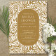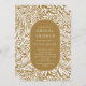 Modern leaf and flower pattern with a stylish oval framing your party information in Mustard and white.
