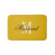 Mustard yellow bath mat with elegant name monogram