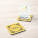 Mustard Yellow Grey Geometric Border Monogram Name Coaster