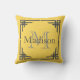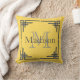 Mustard Yellow Grey Geometric Border Monogram Name Cushion