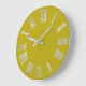 Mustard Yellow Lime Silver Grey Roman Number Large Clock