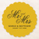 Mustard yellow personalized wedding coasters. Elegant script typography template.