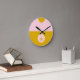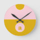 Modern, chic, minimalist Mustard Yellow Pink Colour Block Monogram Round Clock