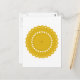 A printed design inspired by lace. An elegant mustard yellow circular graphic design, with patterned areas.