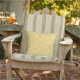 This design features a whimsical pattern of white dandelion seeds floating on a mustard yellow background. Ideal for your patio, deck, or porch.