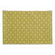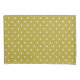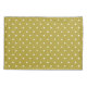Pattern of white polka dots on a mustard yellow background. The dots are evenly spaced, creating a simple, vintage, playful aesthetic.